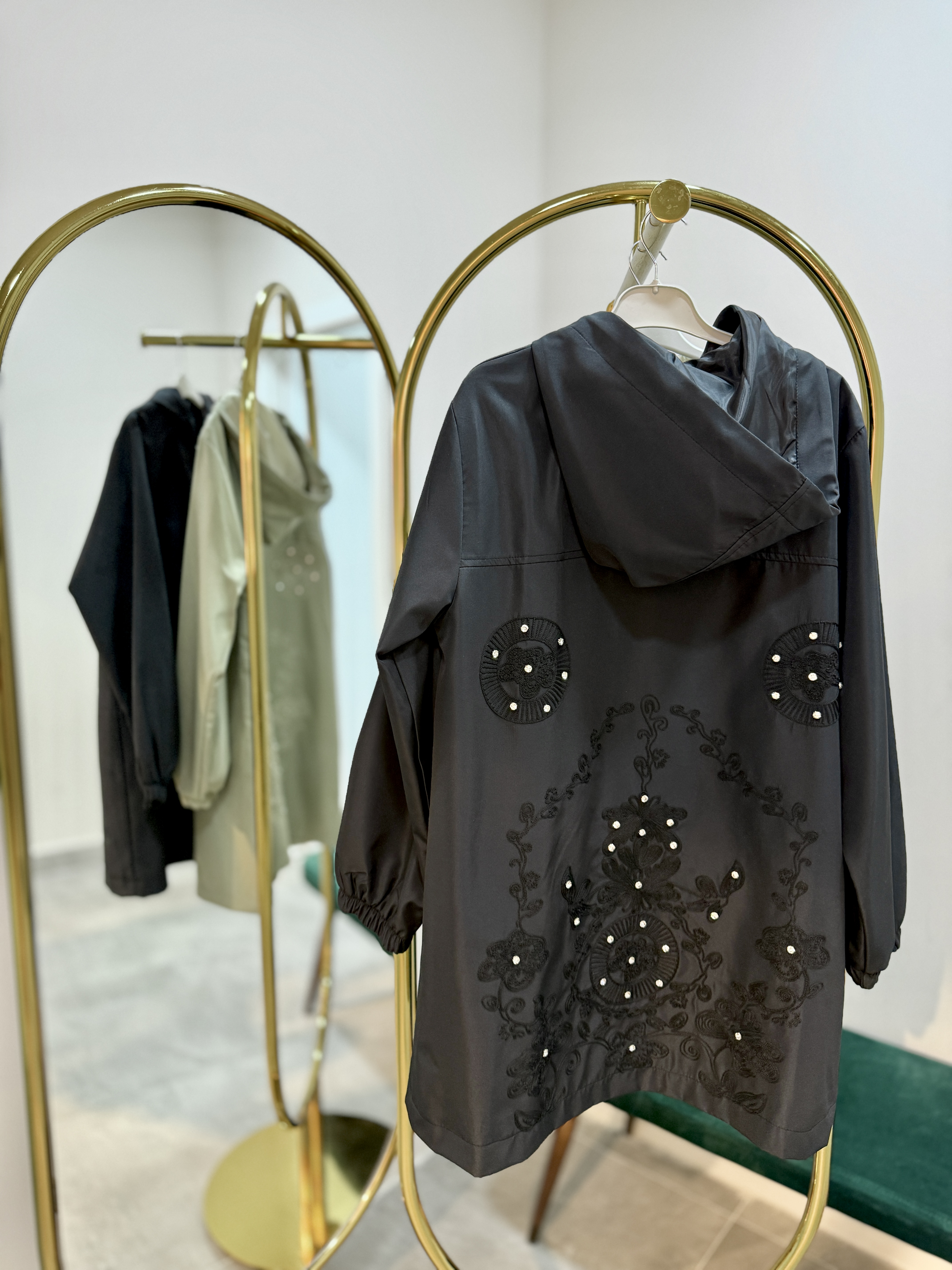 Arkası Taşlı siyah Trençkot